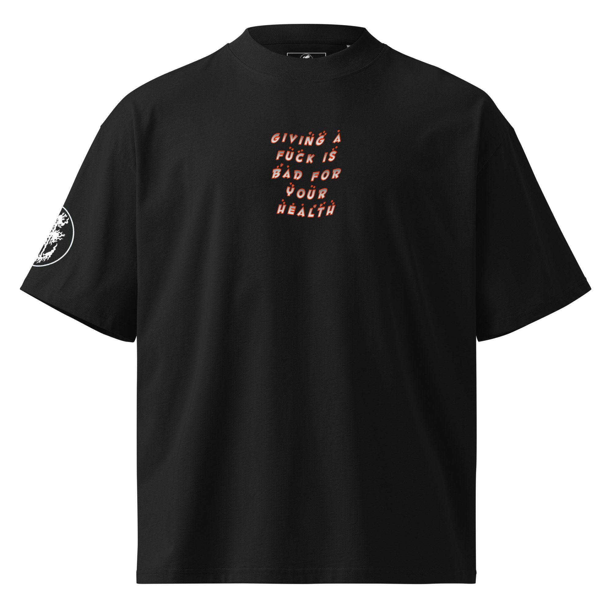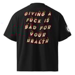 * “ giving a fuck is bad for your health” on center chest and also on back”